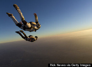 Skydiving track sunset