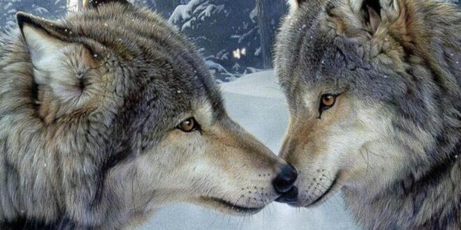 Gray wolves live in packs where there is an alpha male and an alpha female, who are usually the only ones who mate and breed. Wolves are tremendously faithful to their mate and would die guarding their small puppies.